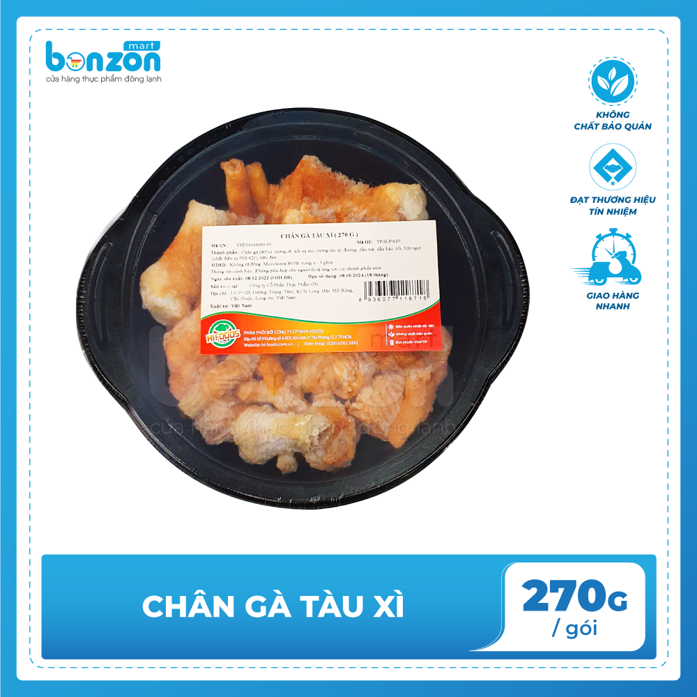 Với sản phẩm tươi sống, trọng lượng thực tế có thể chênh lệch khoảng 10%. ĐỊNH LƯỢNG: 270g THÀNH PHẦN: Chân gà (80%), nước, xốt xá xíu, dầu mè, tương ớt, tương tàu xì, tỏi,