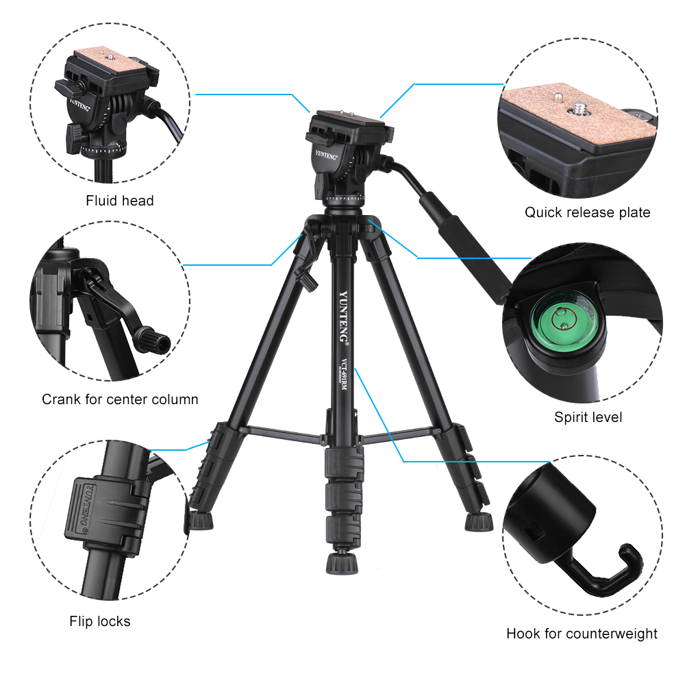 - Chân Máy Ảnh Tripod Yunteng VCT-691 chân với thiết kế nhỏ gọn cứng cáp rất tiện dùng khi mang đi chơi, du lịch. Chân đế chụp hình cho điện thoại có thể tùy chỉnh cao thấp