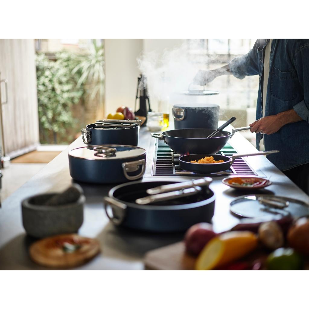 Không phải tất cả các loại chảo đều được tạo ra như nhau. Xin giới thiệu Space, dòng sản phẩm đồ nấu nướng chất lượng chuyên nghiệp mang tính cách mạng của chúng tôi, được hoàn thiện bằng màu Midnight Blue cao cấp.