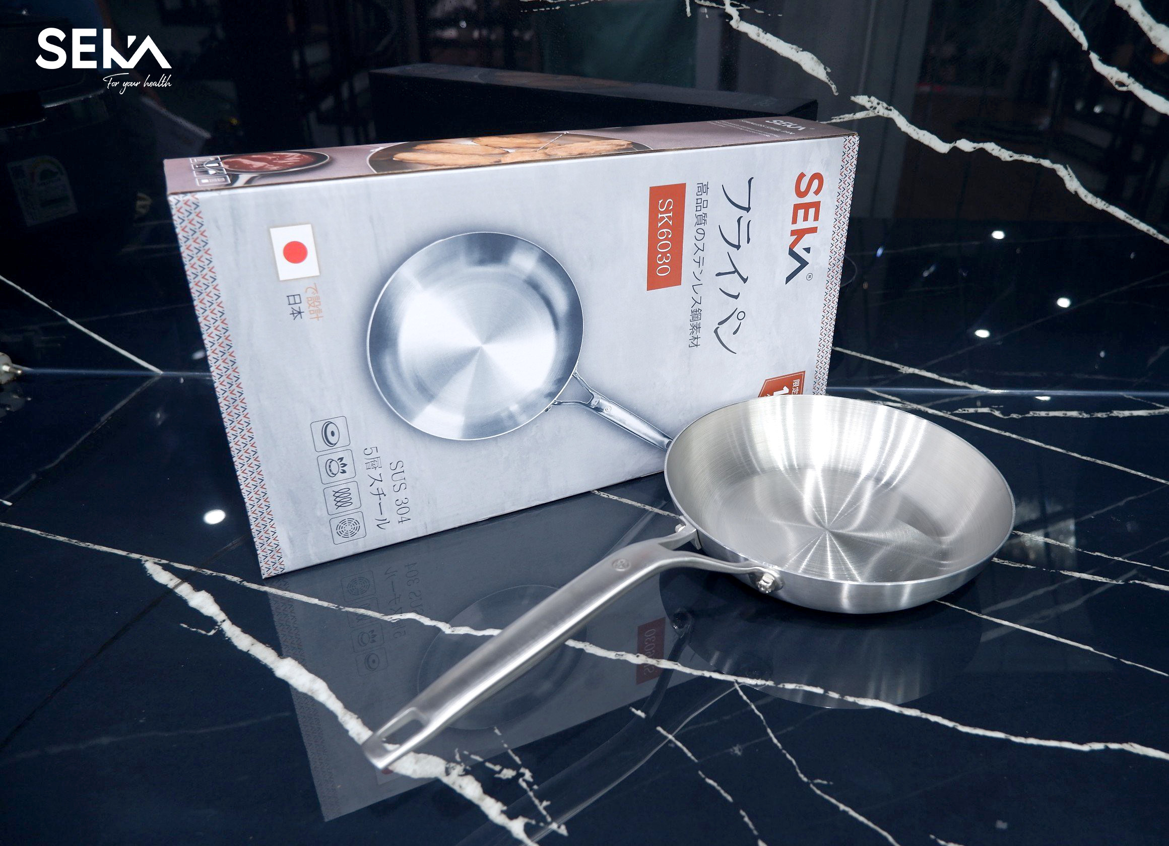 ✨Chảo inox Nguyên khối nông lòng SEKA SK6030, sử dụng cho mọi loại bếp