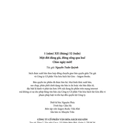 “Một đời đáng giá, đừng sống qua loa!” Đó cũng chính là tinh thần của quyển sách và là châm ngôn sống của tác giả Nguyễn Tuấn Quỳnh - một tên tuổi lẫy lừng một thời của ngành xăng dầu “xê dịch” đến ngành xuất bản cùng hơn 20 năm kinh nghiệm ở vị trí điều hành kinh doanh cấp cao. Trải qua đủ những nốt thăng trầm, thấu cảm cả những giai điệu từ hân hoan đến bi ai của bản nhạc cuộc đời; những câu từ giản dị, chân tình trong “Chào ngày mới!” như chất chứa tất cả sự tâm huyết và trân trọng của người đi trước gửi đến thế hệ trẻ.