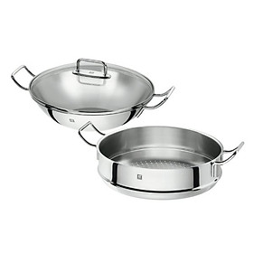 CHẢO TỪ ZWILLING PLUS WOK 32CM có những đặc điểm sau: Chảo từ Zwilling Plus Wok 3 đáy Đường kính: 32cm/ 12,6 inch 1 xửng hấp 32 cm kèm Đường kính đáy: 14cm/ 5,5 inch