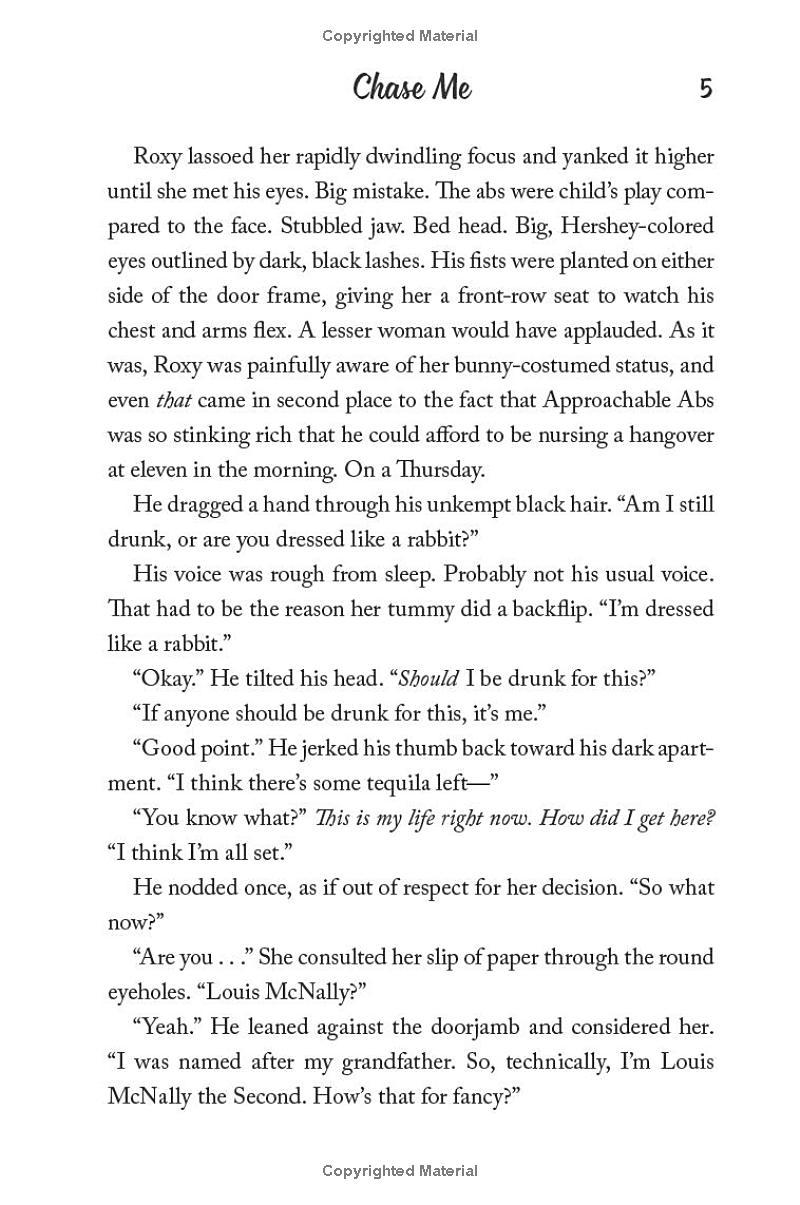 After a night out to celebrate winning his last case, lawyer Louis McNally II isn't prepared for the pounding in his head or the rabbit serenading him from the front door. But the sassy wit and sexy voice of the girl behind the mask intrigue him, and one look at her stunning face—followed by a mind-blowing kiss against his doorjamb—leaves Louis wanting more.