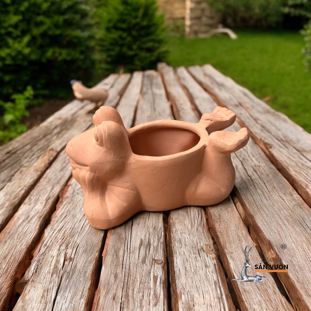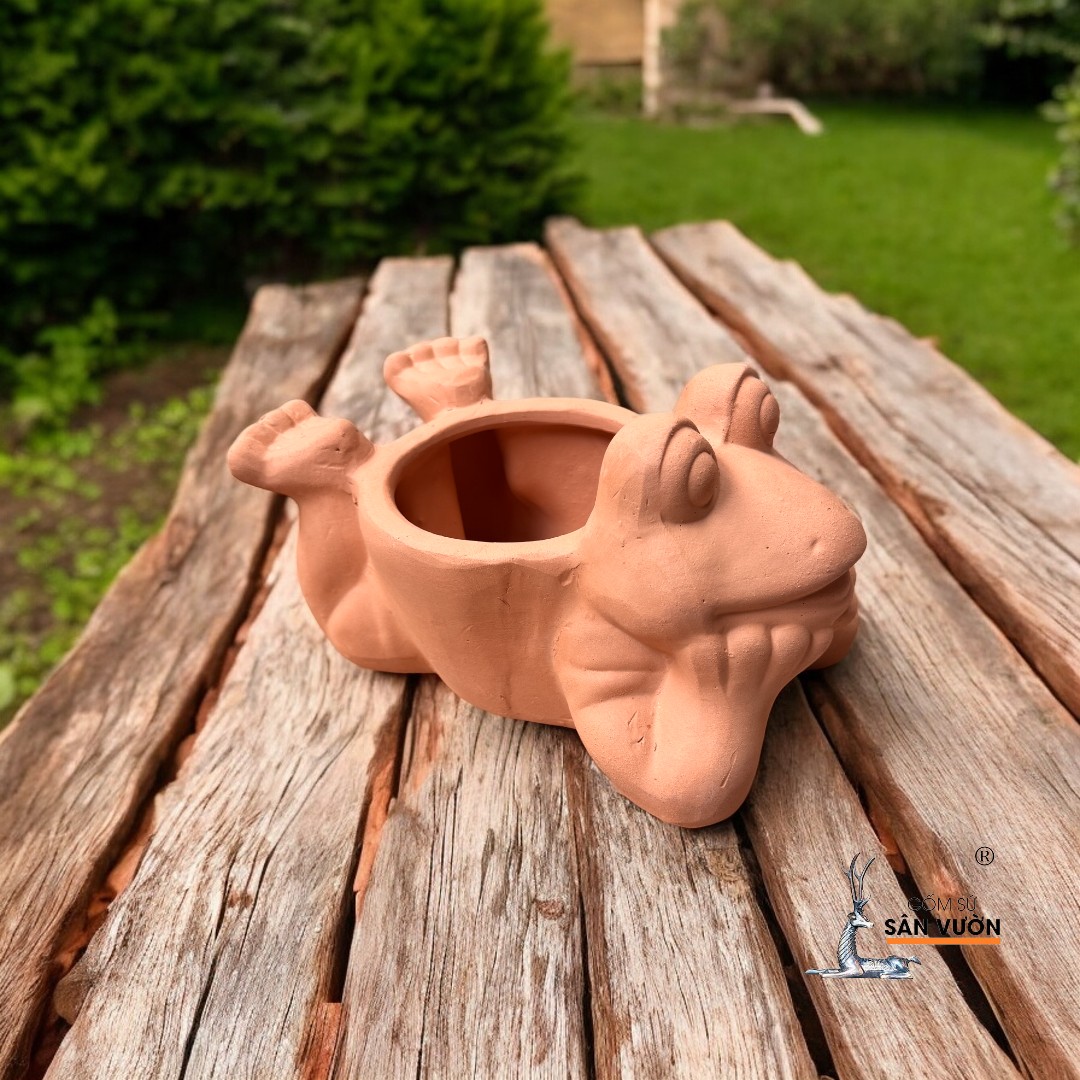 ✨Chậu Gốm Đất Nung Hình Con Ếch Nằm - Chậu Decor và Trồng Cây