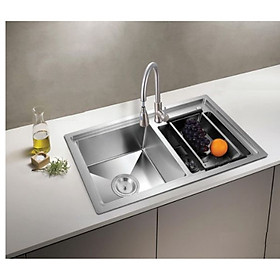 Chất liệu inox SUS304 độ dày thành chậu 3.5mm Thành chậu 3-5mm, đáy chậu 1.2mm Thiết kế chống tràn, chống ồn Bề mặt xử lý công nghệ NANO chống bám khuẩn Kích thước sản phẩm: