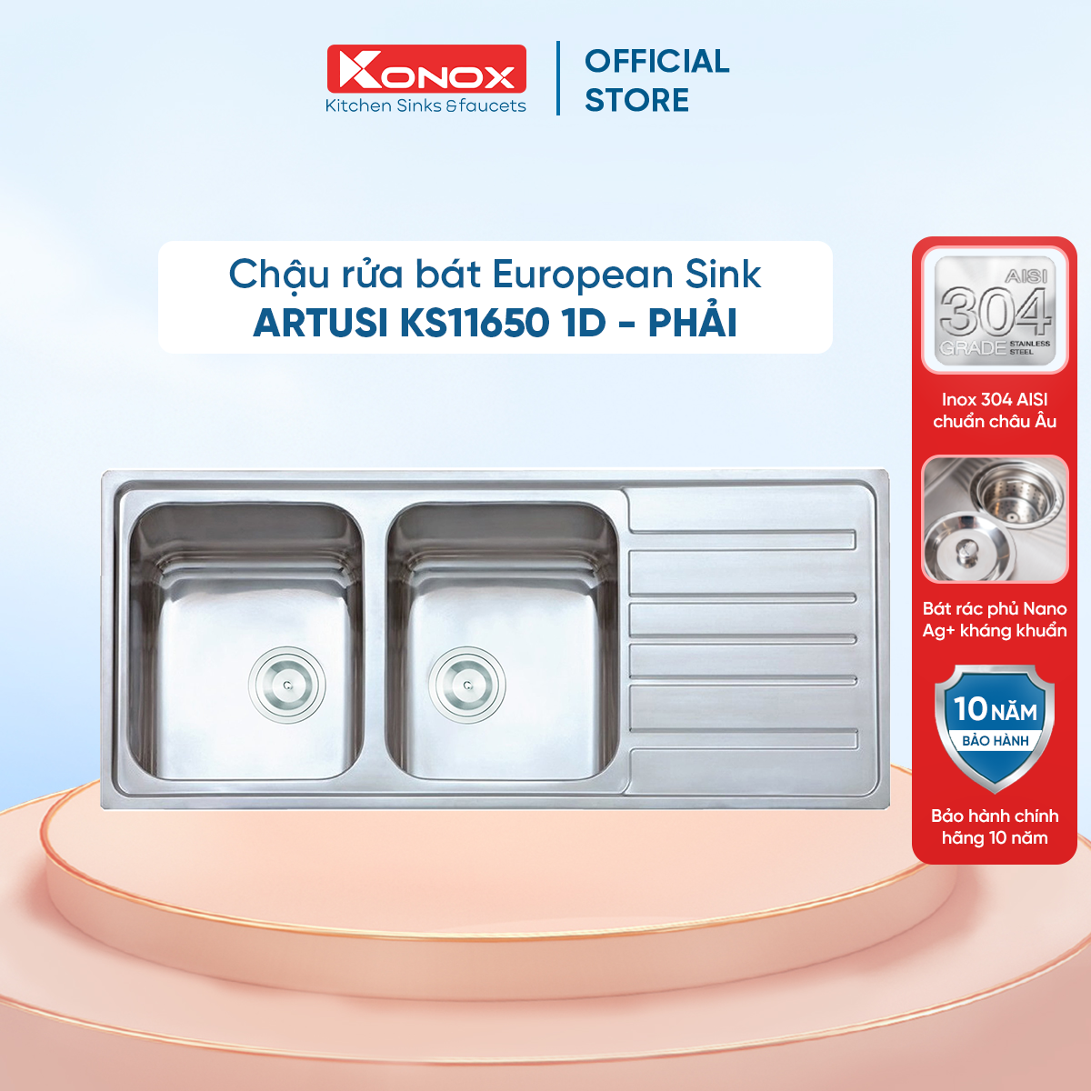 KONOX KS11650 1D - Chậu rửa bát inox 2 hố 1 bàn - VUATHIETBI.COM