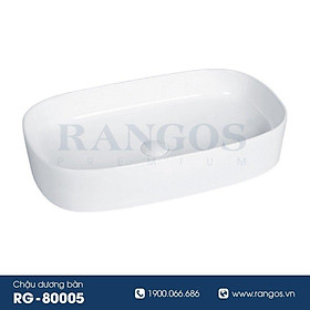 Sản phẩm: Chậu rửa lavabo đặt bàn Rangos RG-80005B Thiết kế chậu đặt bàn hình chữ nhật bo góc sang trọng Công nghệ FFC hiện đại, vật liệu từ cao lanh chất lượng cao Nhiệt