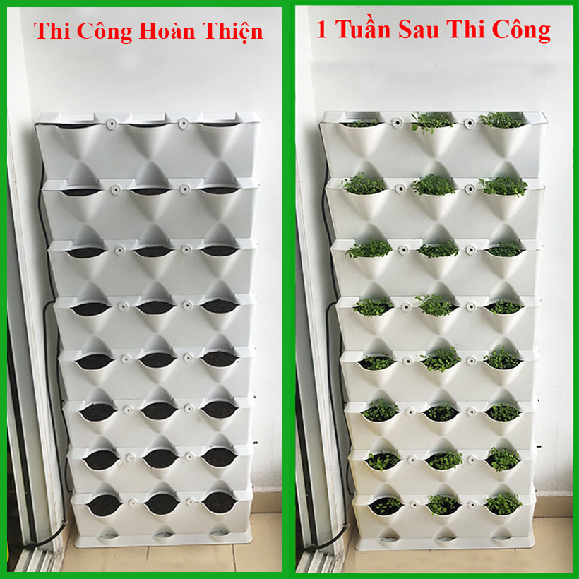 CHẬU TRỒNG RAU SẠCH TẠI NHÀ (1M2 DẠNG ĐỨNG) LÀ CHẬU NHỰA MODULE TRỒNG RAU ÁP TƯỜNG NHẬP KHẨU CHÂU ÂU BẢO HÀNH 5 NĂM (GỒM 8 MODULE LÀ 24 HỐC RAU và CHƯA GỒM