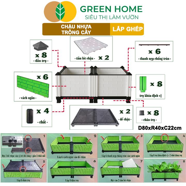 - Lắp ghép: có thể cho phép lắp ghép theo các chiều, nối dài, nối rộng, nối cao - giúp bạn có được chậu theo ý muốn.