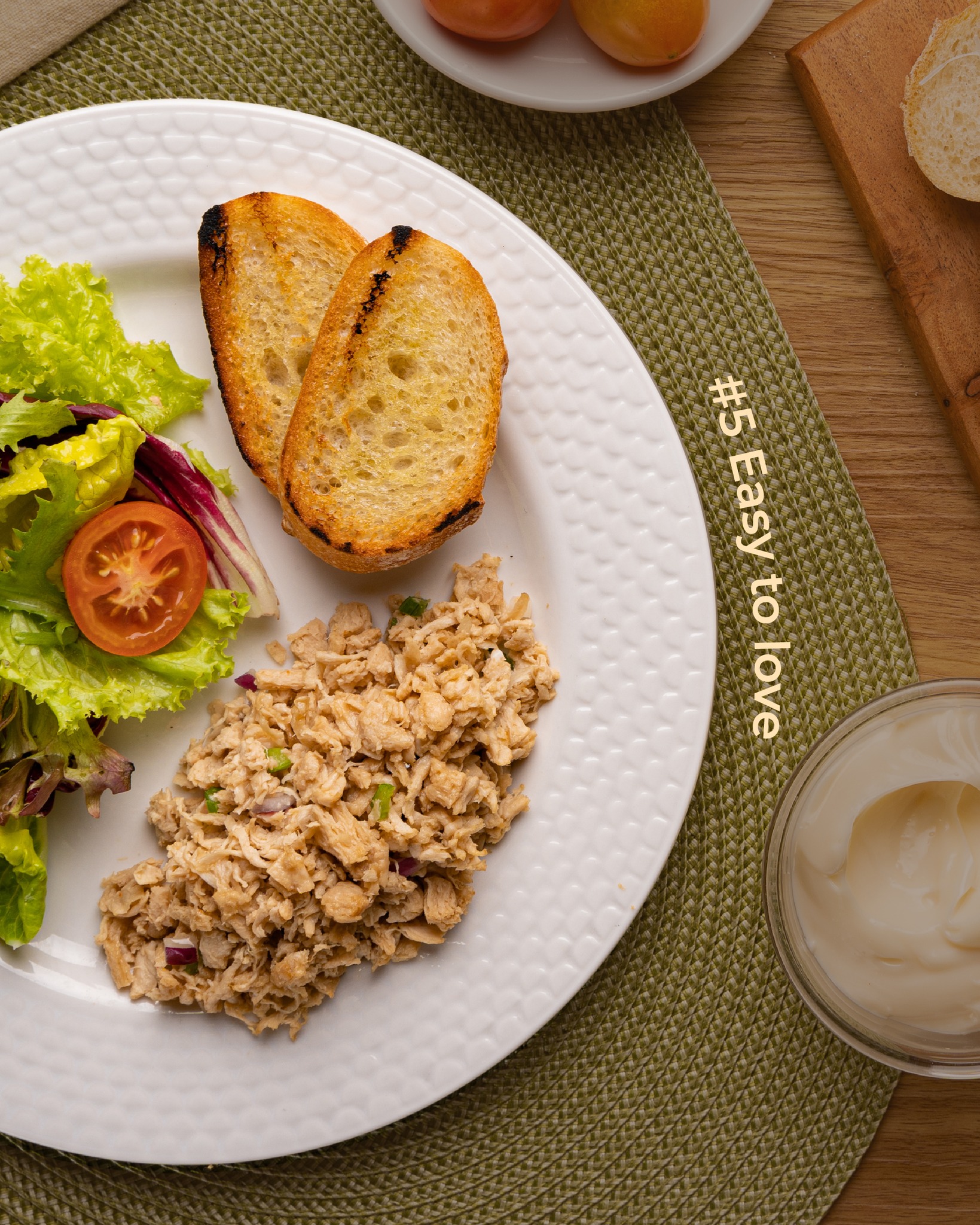 - Cá ngừ chay ngâm dầu Bổ sung ngay vào thực đơn của bạn để chế biến thêm ngàn món ăn ngon đặc sắc với Unmeat nhé! Thành Phần: Nước, lúa mì và protein đậu nành không biến đổi gen, dầu hướng dương (10%), hương liệu tự nhiên (hương cá ngừ), muối, nước dùng rau củ, gia vị (tỏi, hành), chất điều chỉnh độ acid: acid citric (acidulant), chất làm đặc (tinh bột ngô, gum đường ngô), đường và chiết xuất men. Khối lượng tịnh: 180 g/ hộp. Khối lượng ráo nước: 145 -155g/ hộp Hướng dẫn sử dụng: Dùng ăn ngay hoặc chế biến. Hướng dẫn bảo quản: Bảo quản nơi khô mát, tránh ánh nắng mặt trời