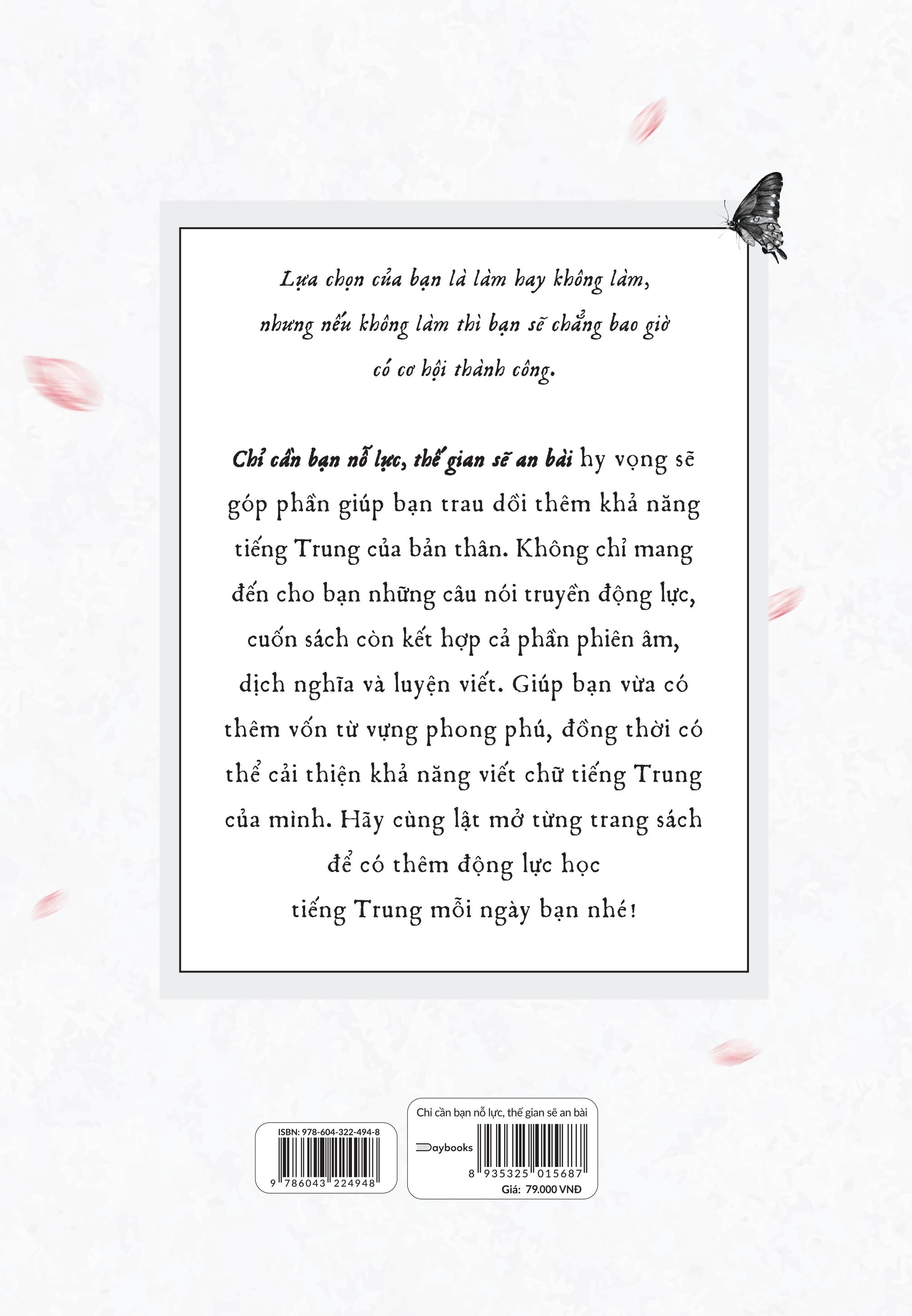 Cuốn sách song ngữ Việt - Trung phiên bản luyện viết “Chỉ cần bạn nỗ lực, thế gian sẽ an bài” sẽ thầm thì những lời dịu dàng để tiếp thêm sức mạnh tinh thần cho bạn cố gắng hơn mỗi ngày: