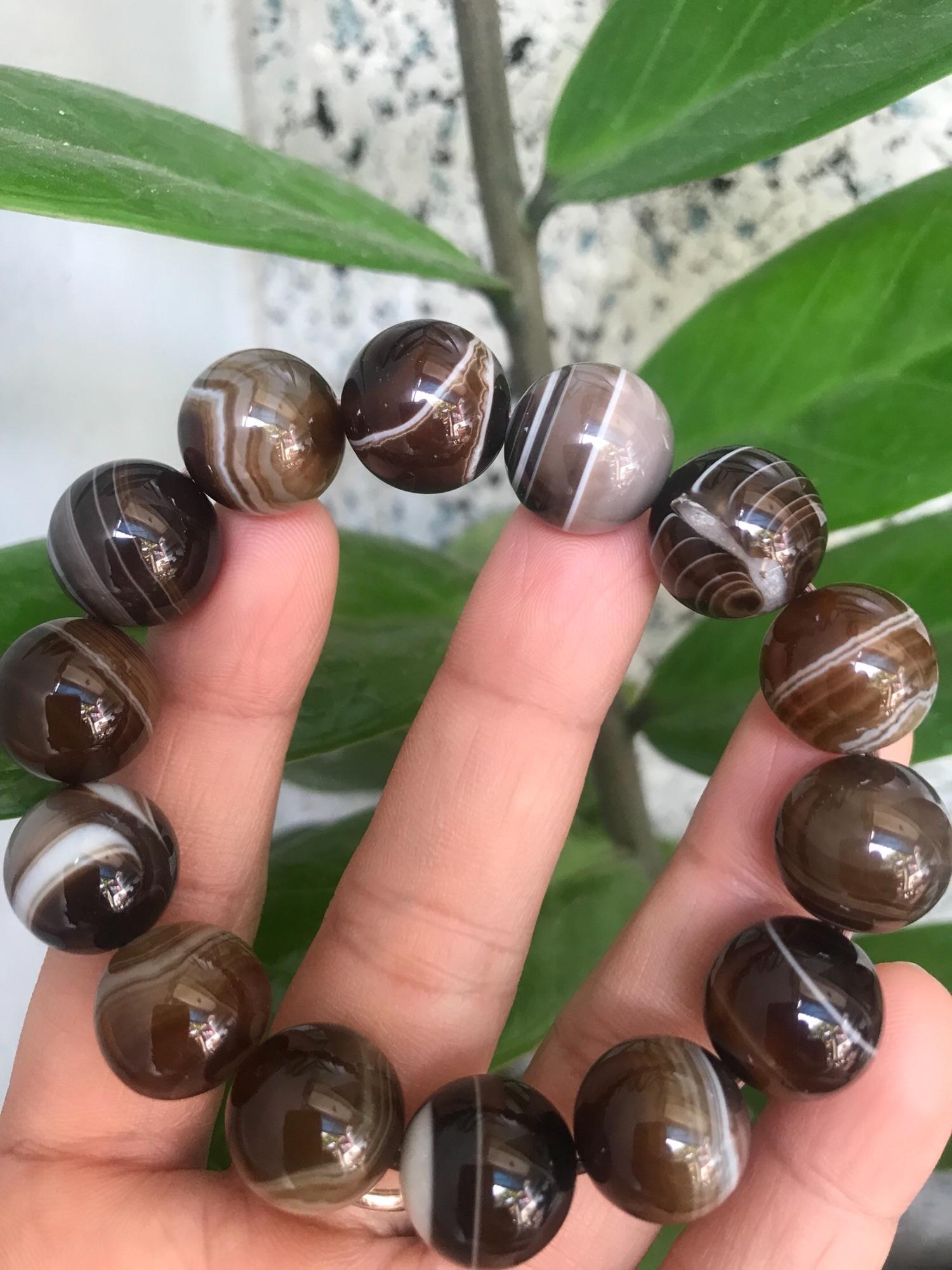 ✨CHIẾC VÒNG MÃ NÃO VÂN VẰN MÀU VÀNG NÂU ĐẤT SẬM ĐẸP SIZE 14MM NAM MẠNG THỔ GỒM 14 HẠT ĐẸP