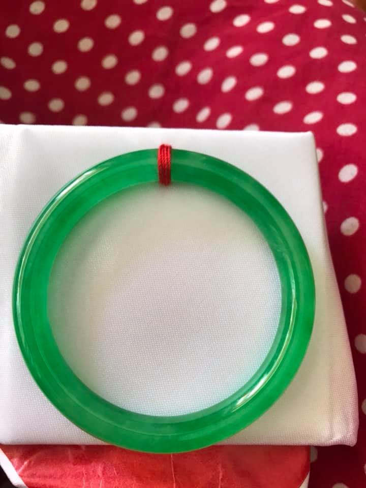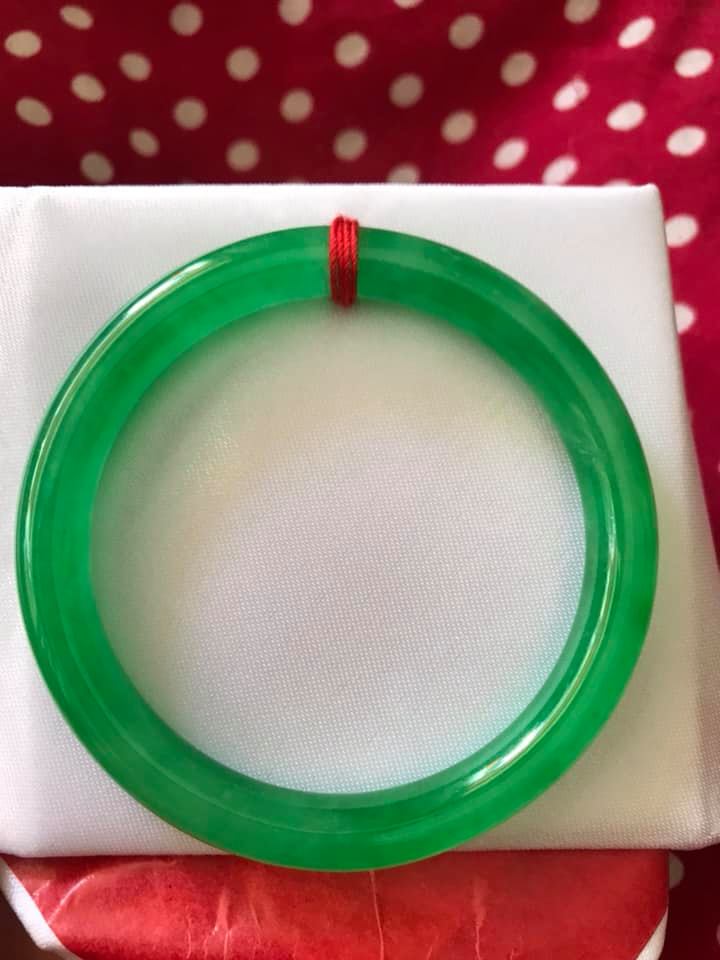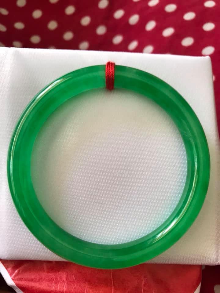 Vòng cẩm thạch Đậu Lý AI CN 53mm Ni 53mm x cọng 7mm Màu xanh Ngọc Đậm đều bóng đẹp xinh xắn Hợp Nữ mệnh Mộc mệnh Hỏa mệnh Thủy 52kg-56kg đeo đẹp ạ Sản