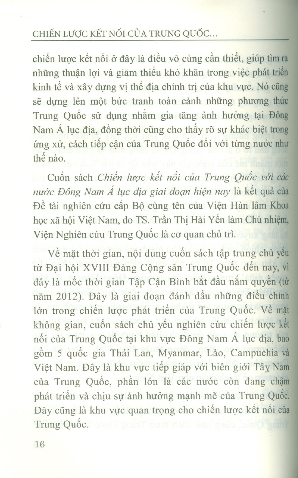 ✨Chiến Lược Kết Nối Của Trung Quốc Với Các Nước Đông Nam Á Lục Địa Giai Đoạn Hiện Nay (Sách chuyên khảo) - Viện Hàn lâm Khoa học Xã hội Việt Nam - Viện Nghiên cứu Trung Quốc - TS. Trần Thị Hải Yến chủ biên