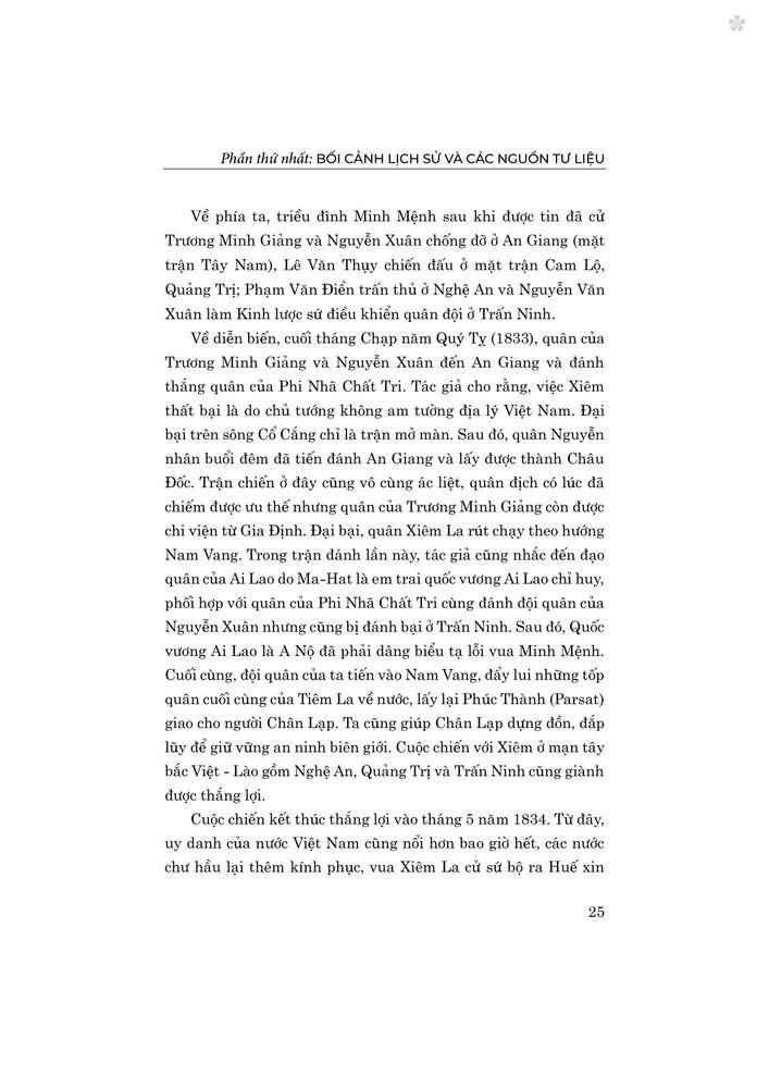 Vào nửa đầu thế kỷ XIX, trong bối cảnh khu vực Đông Nam Á có nhiều chuyển biến phức tạp, Việt Nam đã đương đầu với một cuộc chiến tranh xâm lược mới từ phía Tây của Tổ quốc. Phát huy truyền thống yêu nước đánh giặc giữ nước của dân tộc, dưới sự trị vì của vua Minh Mệnh, quân và dân Việt Nam đã tiến hành cuộc chiến tranh tự vệ, bảo vệ Tổ quốc và làm nên Chiến thắng Vàm Nao - Cổ Hũ đầu năm 1834, mở ra bước ngoặt phát triển dẫn đến kết thúc thắng lợi cuộc kháng chiến chống quân Xiêm xâm lược. Chiến thắng Vàm Nao - Cổ Hũ (1834) thực sự là một trong những chiến công lừng lẫy trong lịch sử chống ngoại xâm của dân tộc trong thế kỷ XIX.