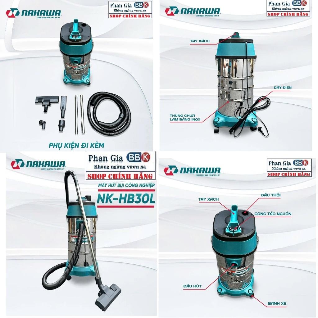 ✨[chính hãƞg] Máy Hút Bụi Công Nghiệp 30L NAKAWA - Công Suất 1600W - Motor Dây Đồng (Bảo Hành 1 Năm)