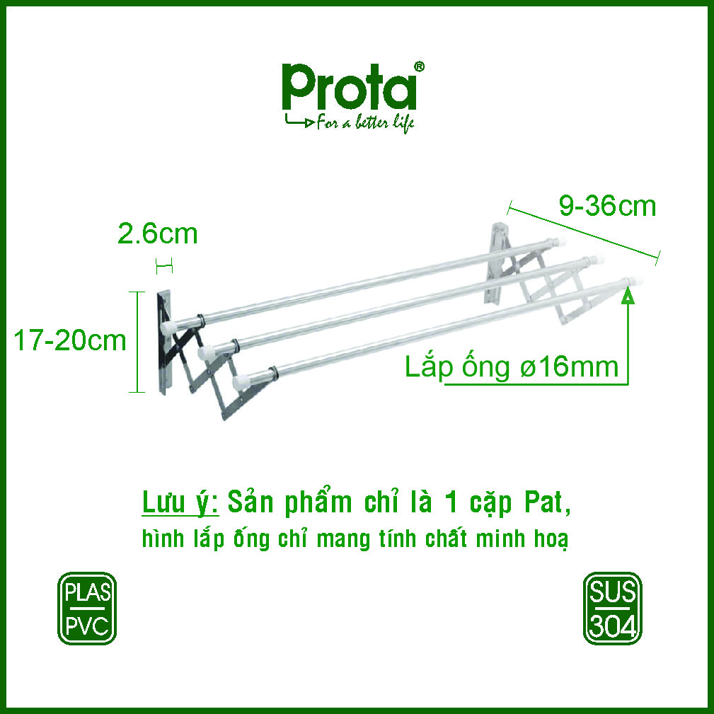 Sản phẩm: Thanh treo tường inox đa năng không cần khoan tường Prota ống 16mm CÁC ĐIỂM NỔI BẬT -Thanh treo tường inox đa năng không cần khoan tường ống 16mm Prota được làm bằng