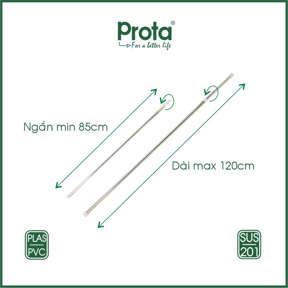Sản phẩm: Thanh treo tường inox đa năng không cần khoan tường Prota ống 16mm CÁC ĐIỂM NỔI BẬT -Thanh treo tường inox đa năng không cần khoan tường ống 16mm Prota được làm bằng