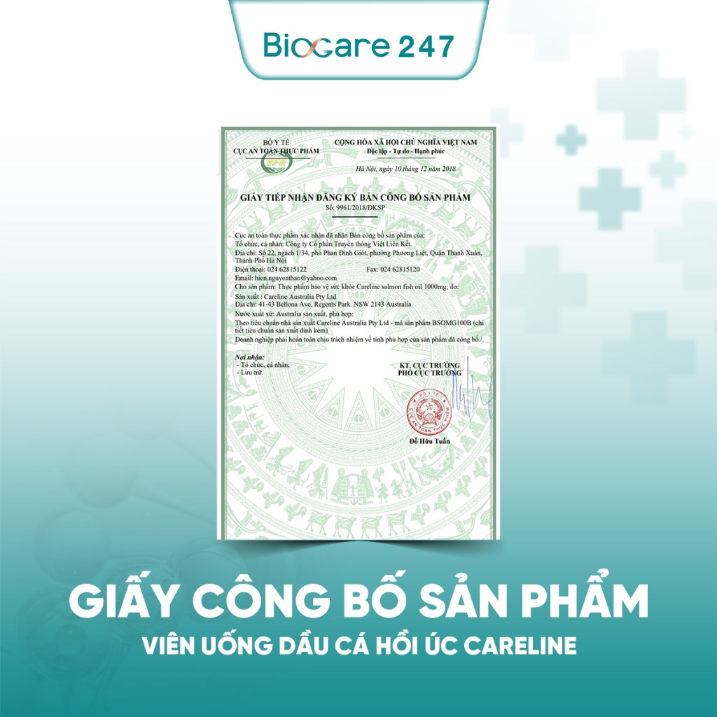[Chính hãng] dầu cá hồi Úc Careline bổ sung DHA, EPA, tăng cường não bộ, bảo vệ thị lực & tim mạch