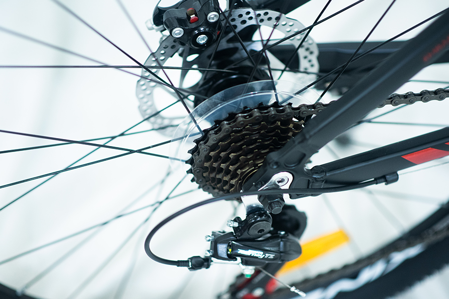 - Bộ biến tốc: Bộ truyền động SHI MA NO TOURNEY TZ gồm 3 tầng đĩa và 7 tầng líp, giúp thay đổi tỉ số truyền động một cách mượt mà và nhanh chóng. Điều này rất hữu ích khi leo dốc hoặc tăng tốc trên các đoạn đường thẳng.