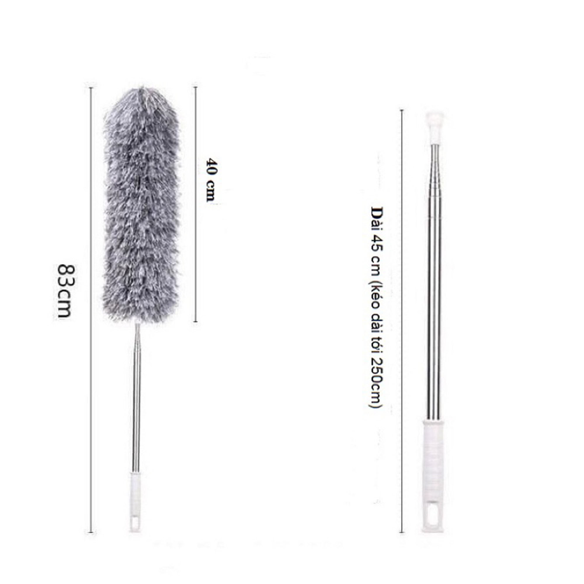 -Cây chổi lông quét bụi trần nhà kéo dài 2M8 , lông mềm mịn ,vệ sinh đồ trên cao dễ dàng đi sâu vào mọi ngóc ngách nhỏ nhất , làm sạch mọi vết bẩn