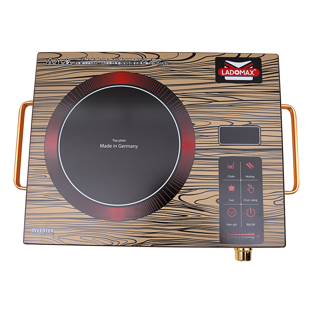 THÔNG SỐ KỸ THUẬT Tên sản phẩm: Bếp hồng ngoại 2200W Ladomax Ha-666 Inox Vân Gỗ Mặt Kính GERMANY Cao Cấp Thương hiệu: LADOMAX Mã sản phẩm: HA-666 INOX Vân Gỗ Loại sản phẩm: Bếp