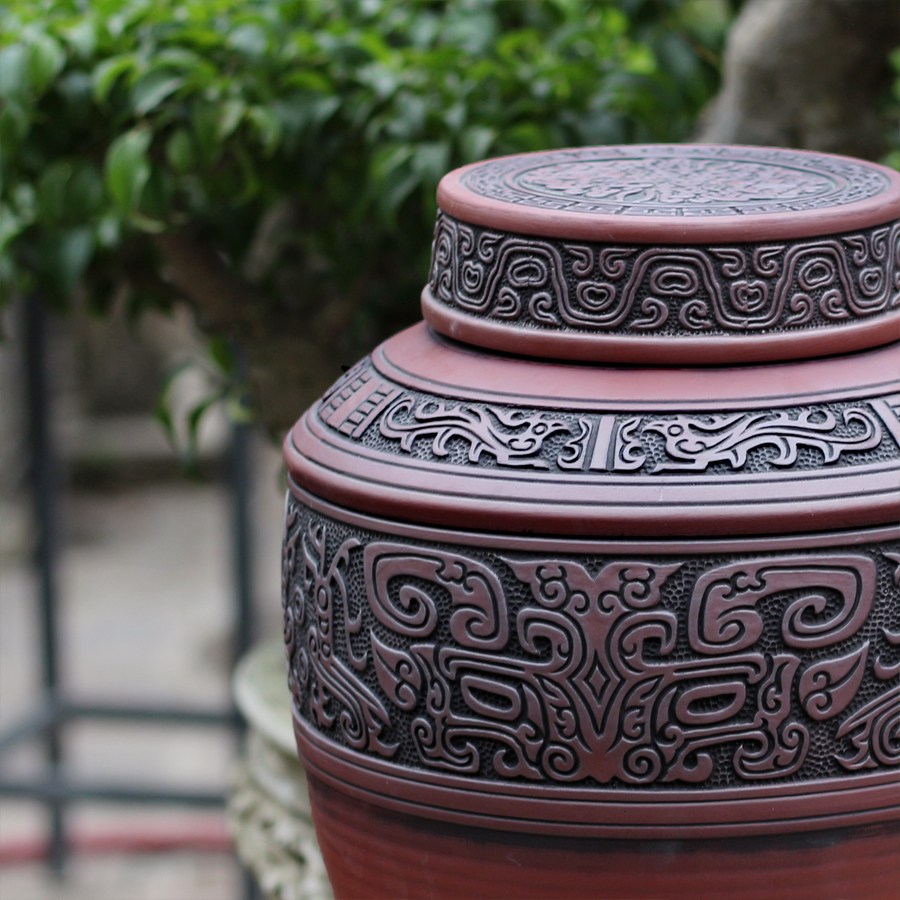 Chum sành Bát Tràng khắc trống đồng Đông Sơn Âu Lạc giá rẻ - chum xịn ngâm rượu