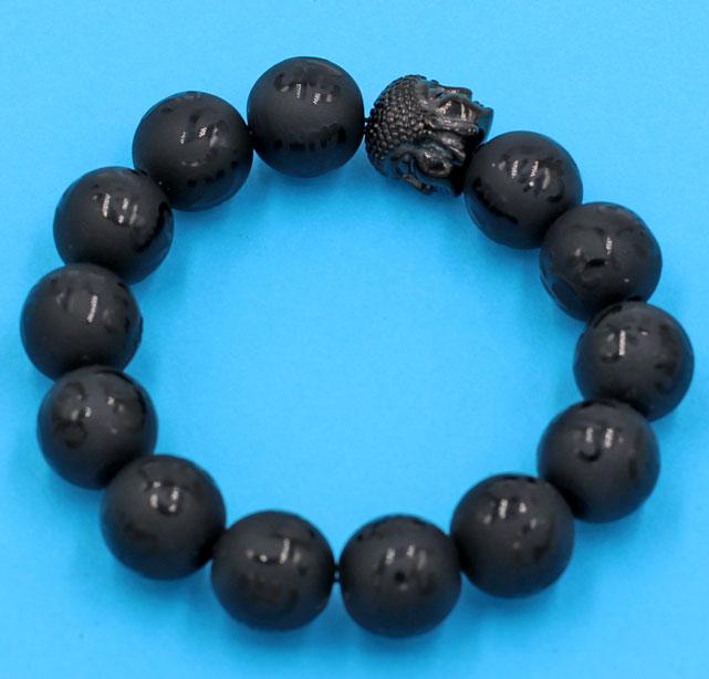 ✨Chuỗi tay thạch anh đen Phật Chú khắc mờ 14 ly - cẩn hạt Như Lai inox đen VTEPCMNLE14 - hợp mệnh Thủy, mệnh Mộc