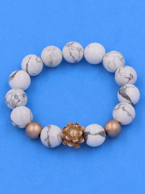✨Chuỗi vòng tay Đá Howlite 12 ly - Vòng tay Hoa Sen vàng hồng VHWLHSHBH12 - hợp mệnh Kim, mệnh Thủy