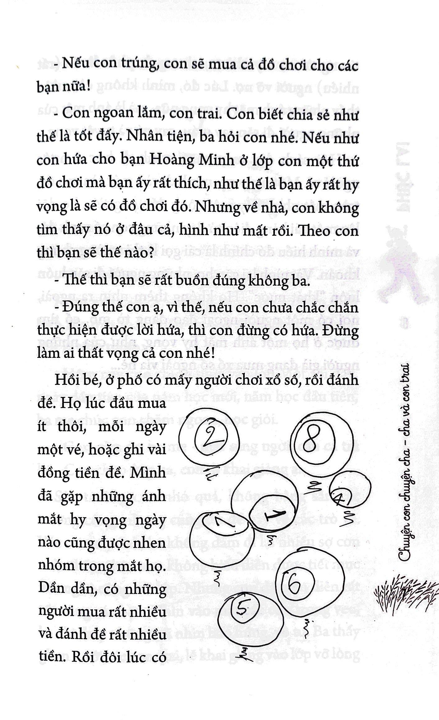 Cùng con trò chuyện hằng ngày, giải đáp thắc mắc của con, cùng con chơi, cùng con học, cùng con quan sát, chia sẻ suy nghĩ, ý tưở người cha trong cuốn sách dần dần trở thành người bạn thân thiết tin cậy của các con: Khi con nản lòng, cha ở bên động viên. Khi con gặp rắc rối với bạn bè, cha ở giữa khuyên giải. Khi con làm sai, cha phạt con tự suy nghĩ