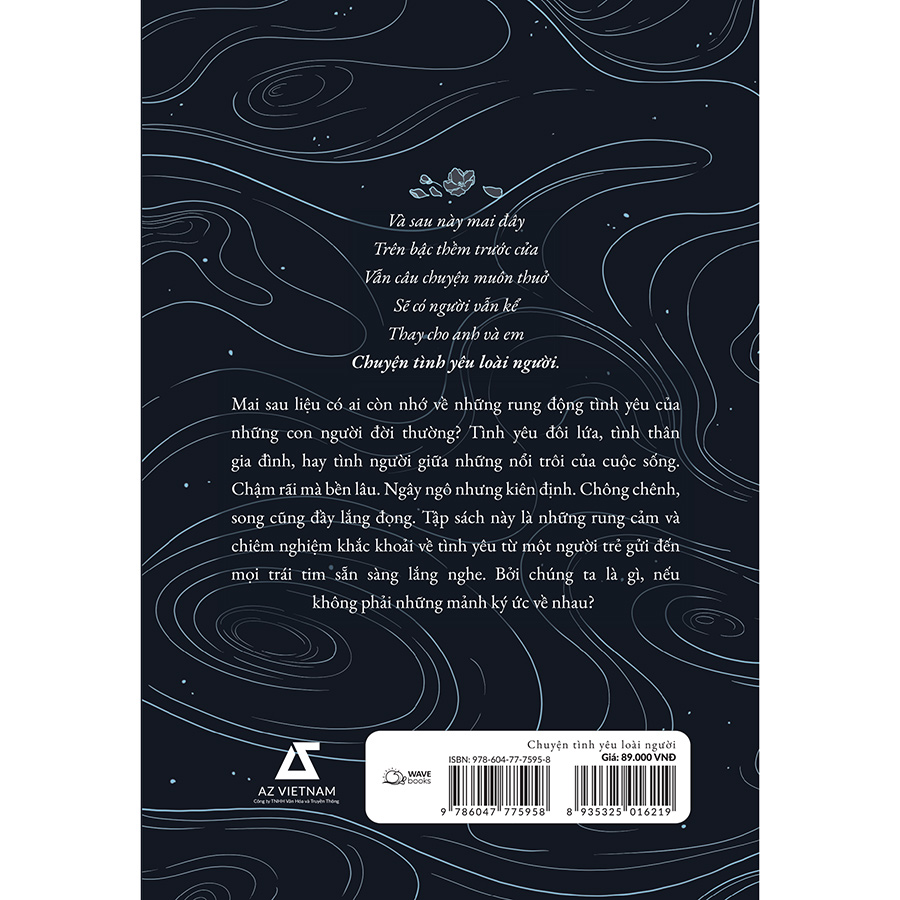Chuyện tình yêu loài người là tập thơ và tản văn được viết bằng những rung cảm, chiêm nghiệm, khắc khoải về: