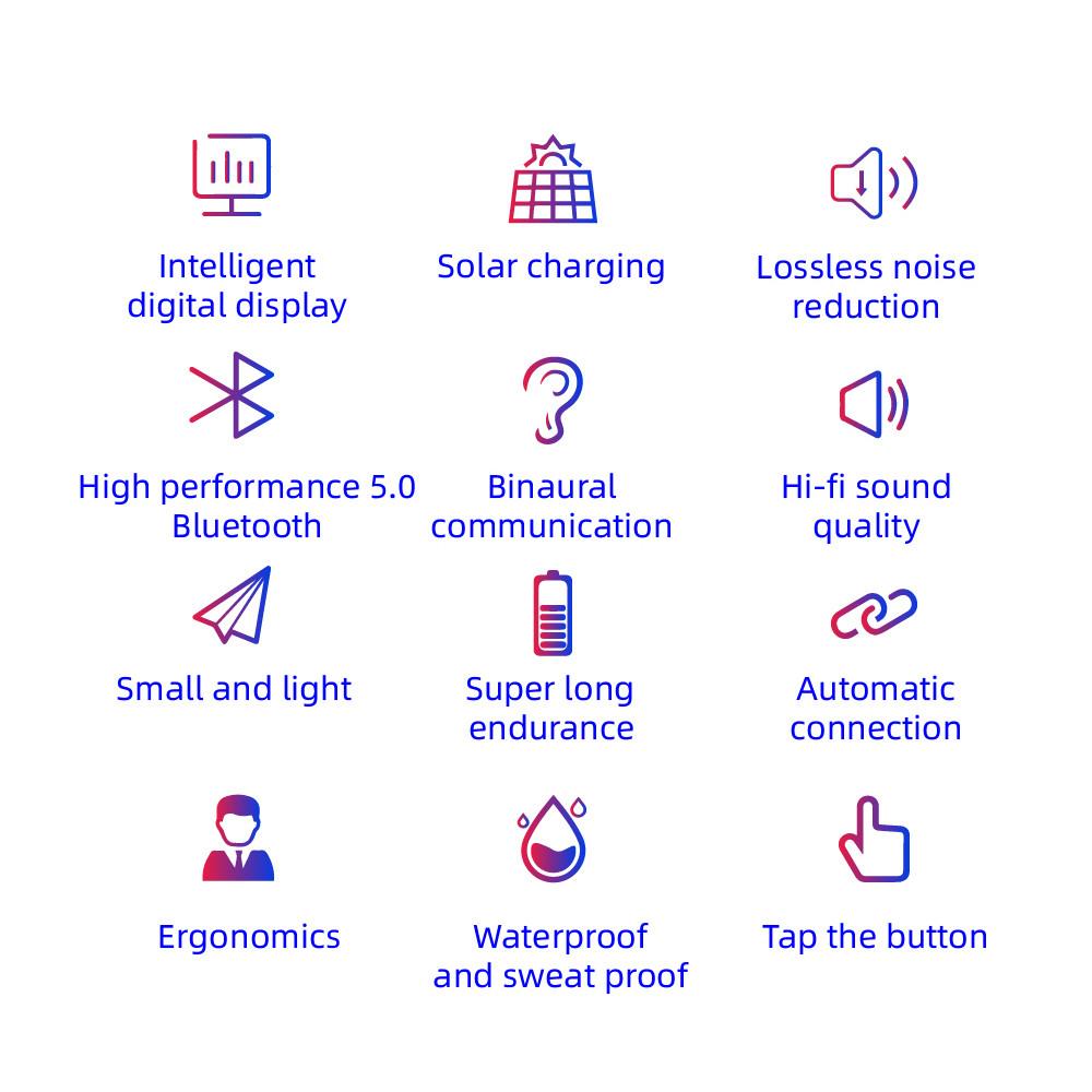 Features: Adopt DSP anti-interference chip and BT5.0 chip, fast and stable transmission, low power consumption. High-quality eight-core 13mm speaker unit, good sound quality, comfortable audio experience. CVC intelligent noise reduction technology can automatically reduct environmental