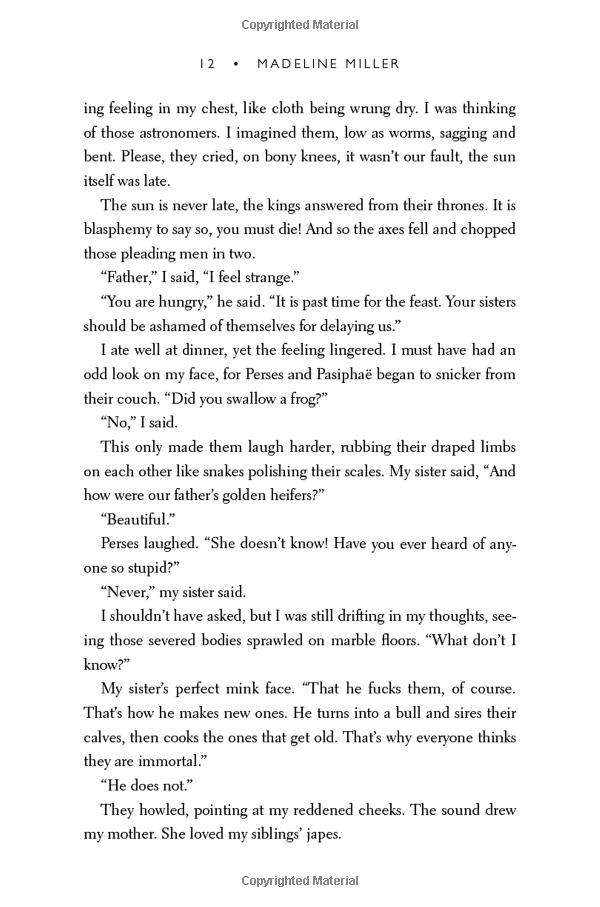 Scorned, rejected and at last exiled from her father's house for her dark gifts, Circe arrives on the remote island of Aiaia with nothing but her wits and magic to help her. But there is danger for a solitary woman in the world, and Circe's independence and strange powers draw the wrath of men and gods alike. To protect what she holds dear, Circe must decide whether she belongs with the deities she is born from, or the mortals she has come to love.