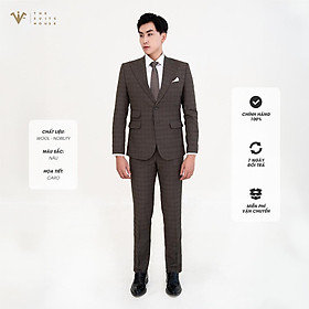 THÔNG TIN SẢN PHẨM - Tên sản phẩm: Nguyên bộ suits 2 mảnh NÂU ĐẬM KẺ Ô, 2 KHUY 3 TÚI - Thương hiệu: THE SUITS HOUSE - Xuất xứ: Việt Nam - Chất liệu: