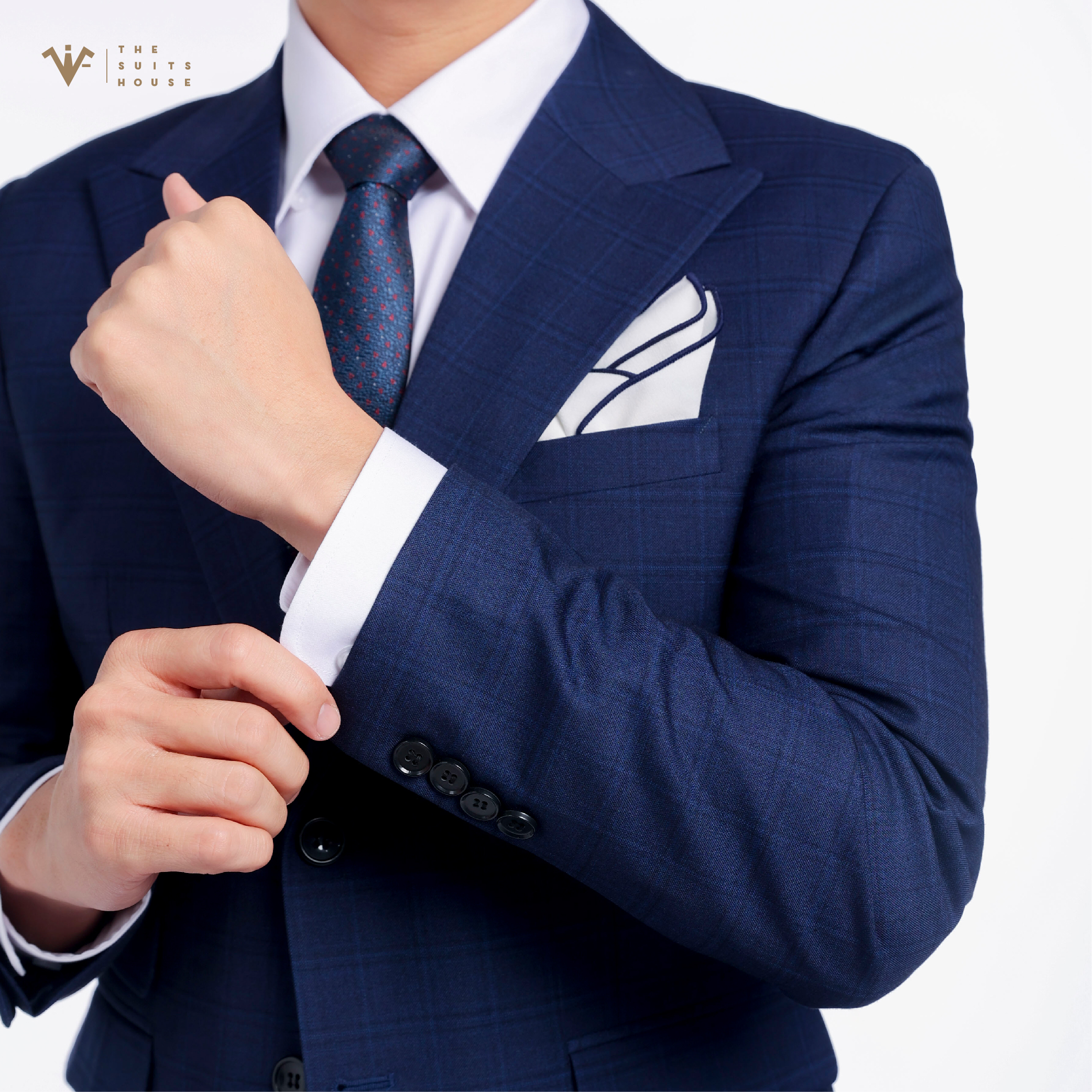- Tên sản phẩm: Bộ suit xanh navy kẻ ẩn - Thương hiệu: THE SUITS HOUSE - Xuất xứ: Việt Nam - Chất liệu: Vải sợi len lông cừu (Wool) - Hãng vải Nobility (nhập