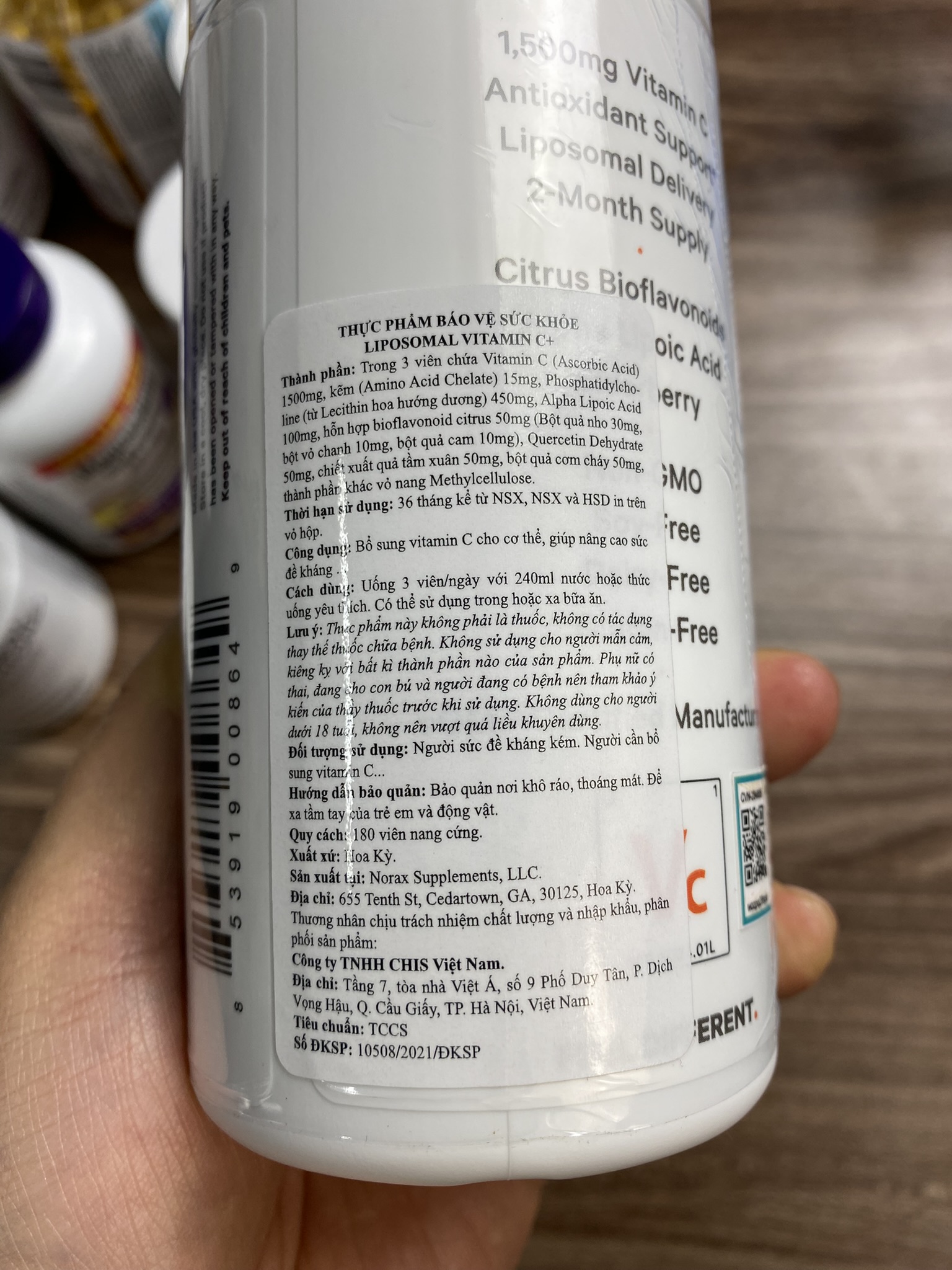 - Số xác nhận nội dung quảng cáo 1234/2023/XNQC-ATTP Mô tả sản phẩm Codeage Liposomal Vitamin C - Sản phẩm hỗ trợ bổ sung Vitamin C thế hệ mới Codeage Liposomal Vitamin C là một dòng sản phẩm độc đáo, đặc biệt thiết kế để hỗ trợ cung cấp Vitamin C thông qua phương thức uống. Xuất xứ chính hãng từ Mỹ và quá trình sản xuất tại nhà máy tuân thủ tiêu chuẩn cGMP, sản phẩm này đảm bảo nguồn gốc xuất xứ và chất lượng cao được chứng nhận bởi FDA Hoa Kỳ. Với mỗi liều lượng 500mg Vitamin C, Codeage Liposomal Vitamin C là lựa chọn lý tưởng để bổ sung hàng ngày mà không gây thừa Vitamin C, hỗ trợ duy trì sự cân bằng dưỡng chất trong cơ thể. Công thức độc đáo của sản phẩm tích hợp Vitamin C tự nhiên từ trái cây. Điểm nổi bật của sản phẩm Công nghệ Liposome là một đặc điểm nổi bật của Codeage Liposomal Vitamin C, giúp hỗ trợ tăng cường sự hấp thụ của Vitamin C, đồng thời bảo vệ chất này khỏi sự thoái hóa trong quá trình hấp thụ. Lớp phospholipid của Liposome không chỉ giúp vượt qua rào cản ruột mà còn hỗ trợ bảo vệ Vitamin C khi di chuyển từ ruột vào máu. Giới thiệu về thương hiệu Codeage Codeage là thương hiệu nổi tiếng đến từ Mỹ, chuyên cung cấp các sản phẩm chăm sóc sức khỏe và bổ sung dinh dưỡng chất lượng cao. Thương hiệu luôn chú trọng đến việc nghiên cứu và phát triển các sản phẩm dinh dưỡng dựa trên khoa học, kết hợp với nguyên liệu tự nhiên. Các sản phẩm của Codeage được sản xuất tại các cơ sở đạt chuẩn cGMP, đảm bảo chất lượng và sự an tâm cho người tiêu dùng. Thành phần Codeage Liposomal Vitamin C không chỉ là một nguồn cung cấp Vitamin C mạnh mẽ mà còn chứa một hỗn hợp độc đáo của các thành phần khác nhau để tối ưu hóa lợi ích cho sức khỏe. Dưới đây là thành phần chi tiết:
