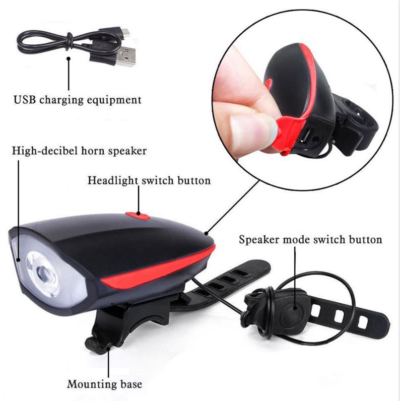 Đèn Xe Đạp Có Còi Chống Nước, Sạc USB