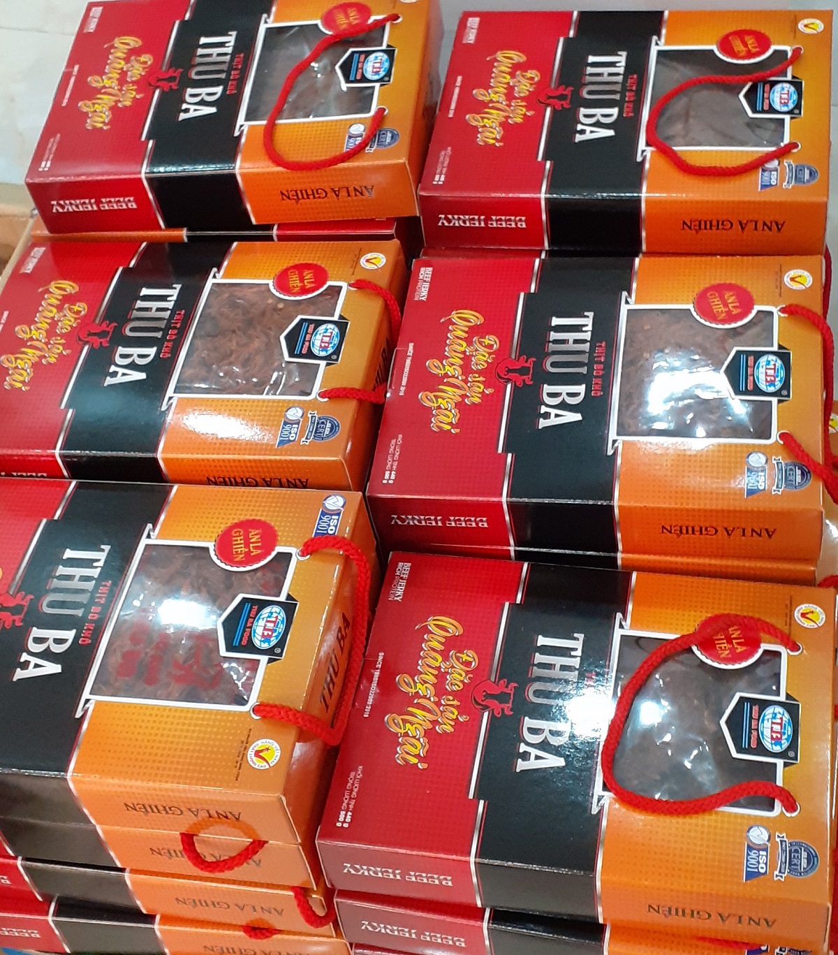 2 hộp 500gr khô bò cay,mềm, ăn là ghiền Khô bò được làm từ 100% thịt bò tươi Không chất bảo quản độc hại Được công nhận là Hàng Việt Nam Chất Lương Cao do người tiêu dùng bình chọn Được chứng nhận An Toàn Vệ Sinh Thực Phẩm   BÒ KHÔ THU BA là món đặc sản Quảng Ngãi, đạt tiêu chuẩn ISO 22000:2018 và là Hàng Việt Nam Chất Lượng Cao do Người tiêu dùng bình chọn từ 2017 đến 2024 Sản phẩm được sản xuất theo công thức truyền thống hơn 30 năm kết hợp với công nghệ hiện đại, bảo đảm chất lượng tốt nhất. Thịt bò được chọn lọc và thu mua từ những con bò khỏe nhất, tốt nhất ở miền núi Quảng Ngãi, loại bò thả rông, tự kiếm ăn trên các đồi núi, đồng cỏ, từ đó cho ra loại thịt ngon nhất. Thuận tiện mang theo khi đi du lịch, picnic Bổ sung dinh dưỡng, năng lượng trong các hoạt động thể thao như: Bóng đá. golf, tennis, bơi lội Bảo quản ở nhiệt độ bình thường  Để cho ra sản phẩm bò khô ngon thì thịt sau khi tẩm ướp sẽ được sấy khô bằng lò lửa để tạo hơi nóng và quạt để hút khí ẩm. Hai yếu tố gió và nhiệt độ nóng làm thịt khô lại trước khi vi khuẩn có cơ hội len lỏi vào làm hư thối thịt. Sản phẩm được tẩm ướp rất khéo léo nên vẫn giữ được độ dai của thịt bò, mùi vị vẫn còn gần như nguyên vẹn. Sản phẩm không sử dụng các hóa chất bảo quản độc hại. Vì vậy bạn hoàn toàn có thể yên tâm khi sử dụng trong các buổi liên hoan, cùng gia đình và bạn bè. Thịt bò khô là loại thực phẩm nhiều chất dinh dưỡng và dễ tiêu hóa