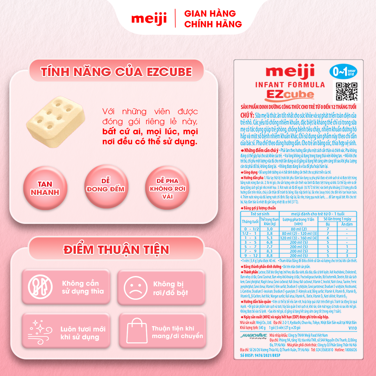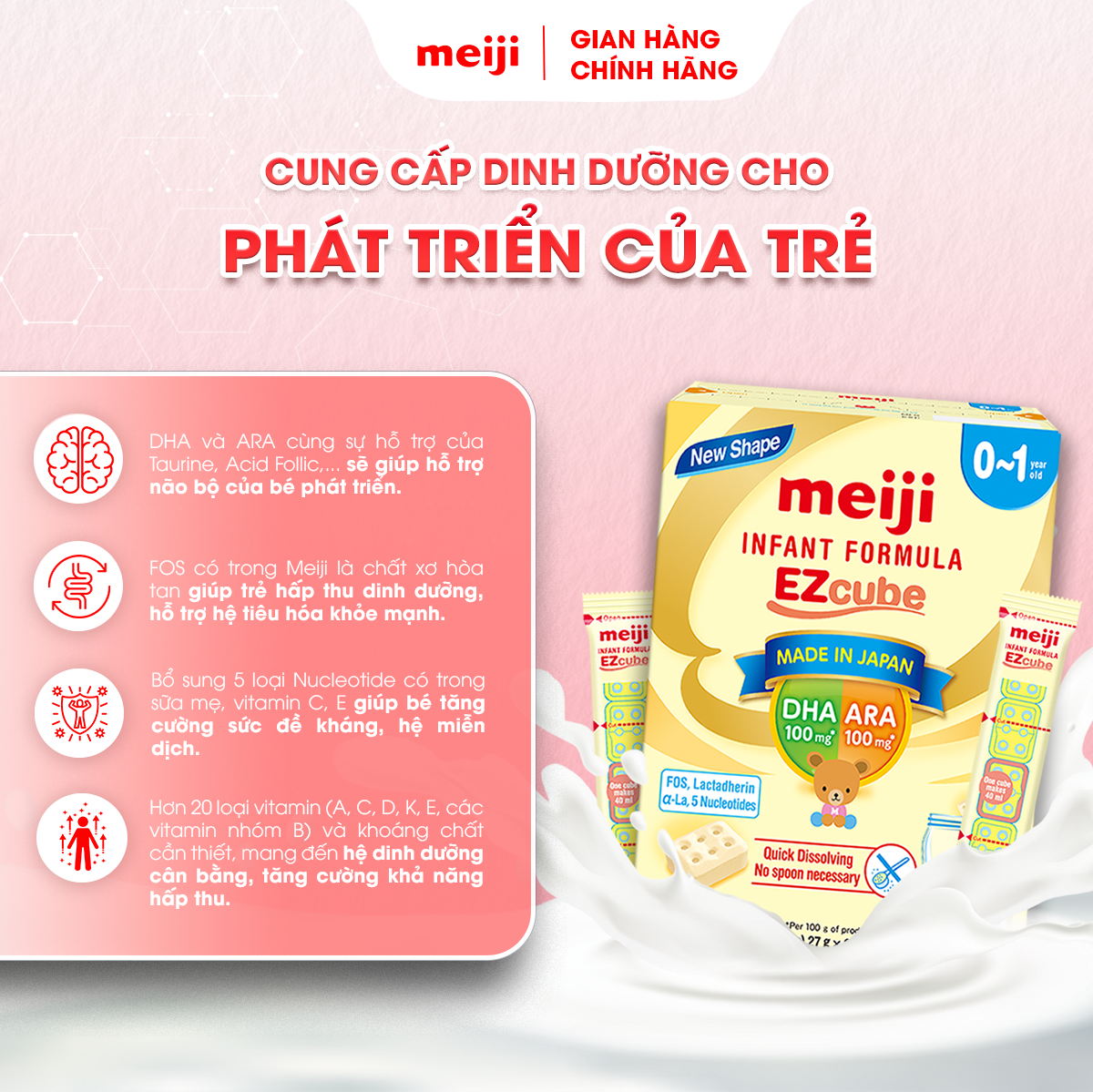 "Sữa mẹ là thức ăn tốt nhất cho sức khỏe và sự phát triển toàn diện của trẻ sơ sinh và trẻ nhỏ" Sữa Meiji Ezcube Infant Formula Dạng Viên là thực phẩm bổ sung