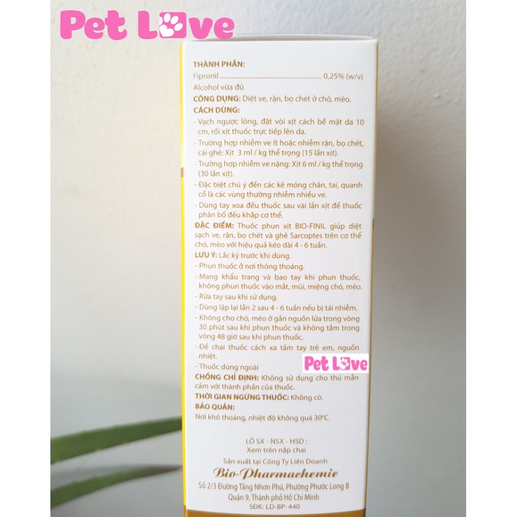 ✨Combo 10 Bio Finil - xịt trị ghẻ, ve rận, bọ chét trên chó mèo