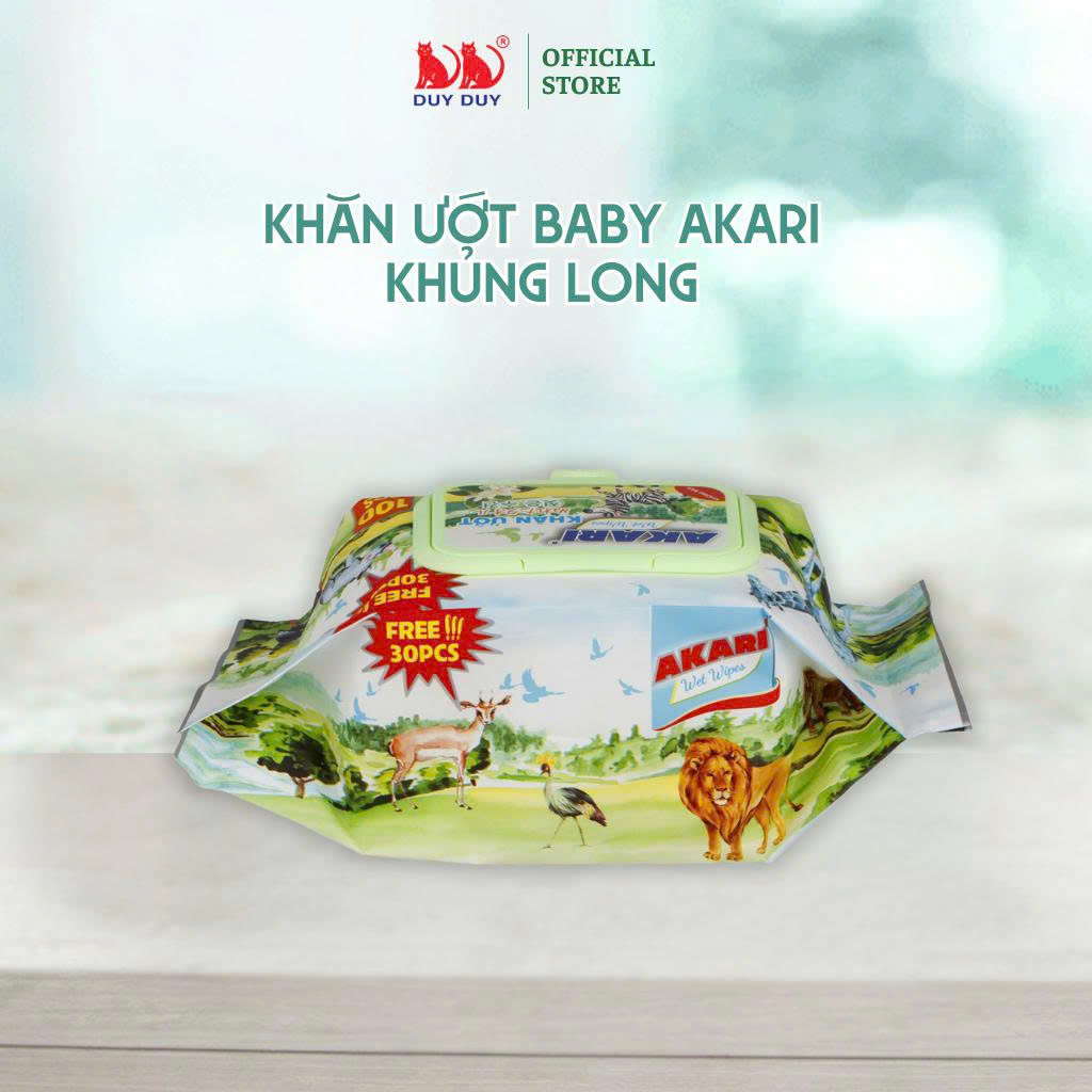 ✨Combo 10 gói Khăn ướt Akari khủng long vải không dệt rayon cao cấp 130 miếng (13.5x20cm) không paraben dành cho bé