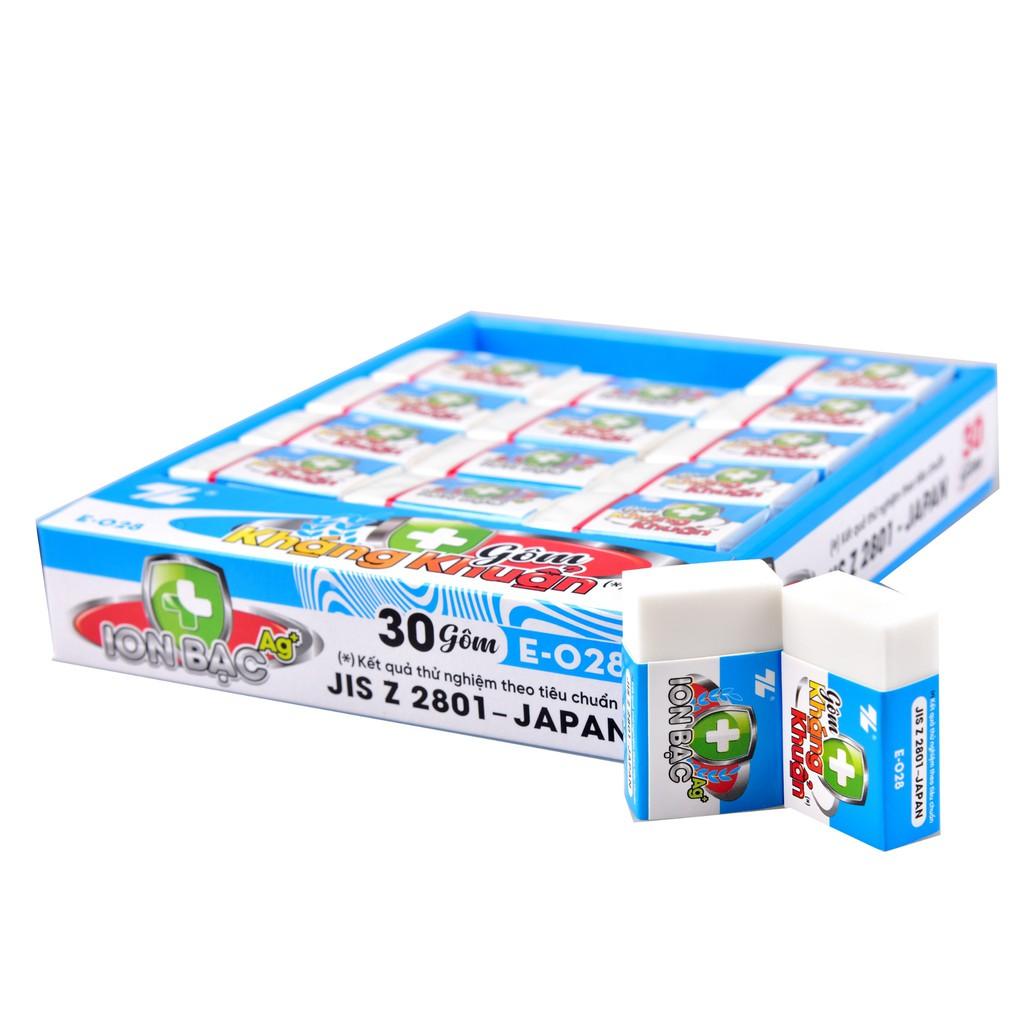 Thương hiệu Thiên Long Hình dáng Chữ nhật Kích thước Nhỏ gọn Chất liệu PVC Quy cách 30 gôm/hộp, 28 hộp/thùng Đối tượng sử dụng Trẻ em trên 3 tuổi Đạt tiêu chuẩn JIS Z 2801-JAPAN Bảo quản Bảo quản nơi khô ráo, thoáng mát, tránh xa nguồn nhiệt, hóa chất Gôm kháng khuẩn Thiên Long E-028 được làm từ chất liệu cao cấp, đáp ứng các chỉ tiêu an toàn cho phép, không có mùi khó chịu mang đến sự an tâm cho người sử dụng. Gôm siêu mềm và siêu dẻo, không bị cứng khi sử dụng trong thời gian dài.