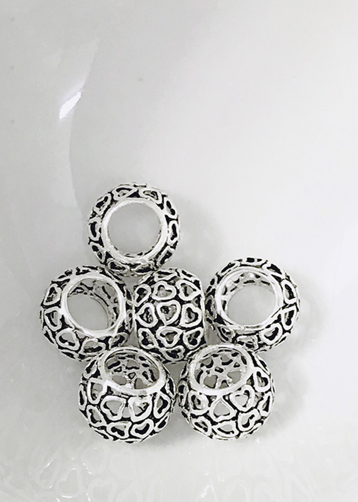 CHARM BẠC HÌNH TRÒN HỌA TIẾT HÌNH TRÁI TIM: