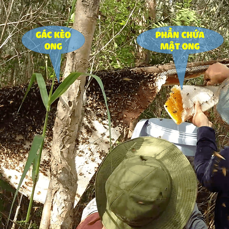 – Gác kèo ong: là dụ những con ong sống hoang dã trong rừng xuống làm tổ và hút mật những bông hoa tràm nở tự nhiên trong rừng