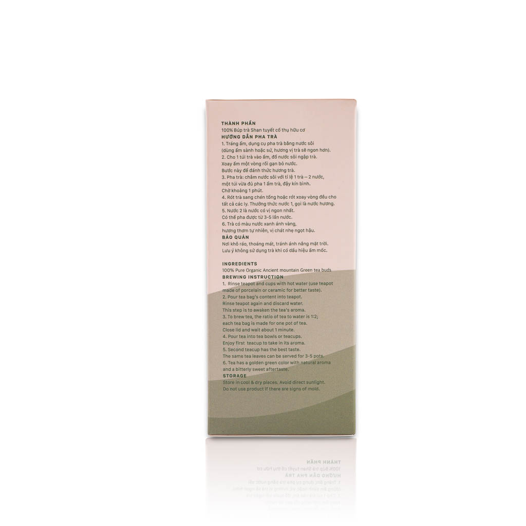 TRÀ ĐEN HỮU CƠ Shan Tuyết Cổ Thụ ( búp ) Hướng dẫn pha trà: - Tráng ấm dụng cụ pha trà bằng nước sôi - Cho 1 túi trà vào ấm ( dùng ấm