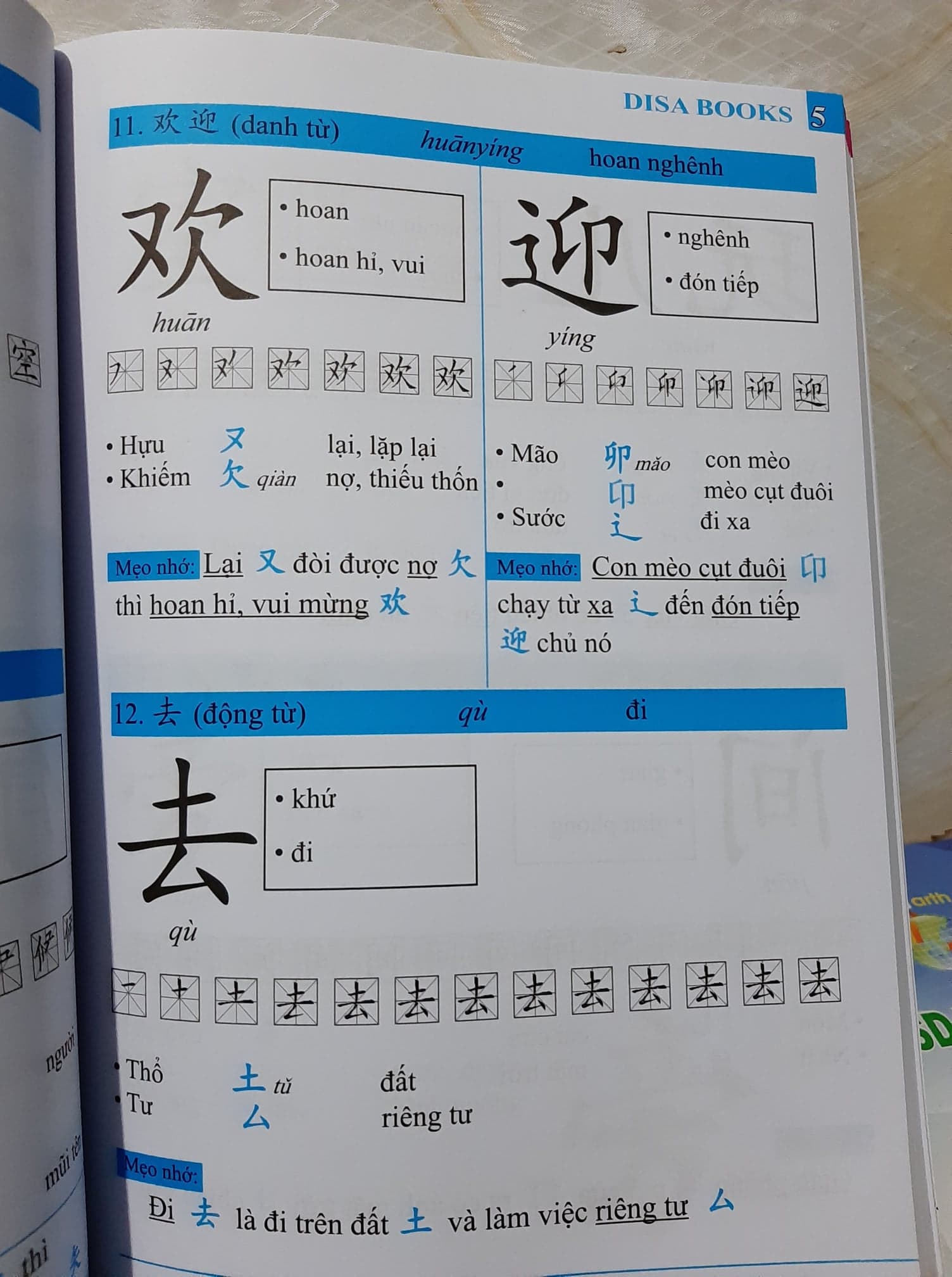 - Siêu trí nhớ chữ Hán tập 01 (In màu, có Audio nghe) Nội dung sách: Giúp bạn dễ dàng nhớ ngay 1000 chữ Hán chỉ sau 2 tháng thông qua mẹo nhớ và hình ảnh dễ hiểu. Tác giả: Diệu Hồ – Phạm Thành Luân Số trang: 250 Năm xuất bản: 2019 Nhà Xuất Bản: Đà Nẵng Cách nhớ chữ Trung Quốc (chữ Hán) a. Nhớ chữ Hán bằng các bộ thủ Bộ thủ chính là cách nhớ chữ Hán hiệu quả , mỗi bộ thủ trong tiếng Hán lại biểu hiện một hiện tượng sự vật riêng. Nhớ được các bộ thủ đó chính là đã nhớ cách viết tiếng Trung như thế nào. Và việc còn lại chính là ghép các bộ thủ đó với nhau để tạo nên được một chữ hoàn chỉnh. vd: chữ 安 Ở trên là bộ 宀 miên => mái nhà mái che, Ở dưới là bộ女 nữ => nữ giới, con gái, đàn bà. Người phụ nữ ở dưới trong nhà thì rất “an” toàn. Ví dụ: 安全 (Ānquán) – An Toàn. Mẹo nhỏ cho những người mới học viết tiếng Trung có thể nhớ đó là dùng các mảnh giấy nhớ, ghi lại những bộ thủ hay những từ mới bằng việc tập viết tiếng Trung. Để những mảnh giấy nhớ đó ở những nơi dễ thấy. Việc nhìn liên tục đó sẽ giúp bạn vừa có thể nhớ chữ vừa có thể nhớ từ. b. Cách nhớ chữ Hán qua thơ Các từ chữ Hán được học bằng cách gieo vần nhịp để người học nhớ chữ Hán dễ hơn như: “Chim chích mà đậu cành tre Thập trên tứ dưới đè chữ tâm” (Chữ Đức) Hay: “Tai nghe miệng nói đít làm vua”. (Chữ Thánh) Nhớ chữ Hán bằng cách vẽ lại những từ đấy. Nhớ các nét, mô phỏng lại và vẽ, đây là một trong những cách rất tốt để nhớ chữ Hán Chữ Hán có hai cách viết là giản thể và phồn thể. Đa phần các giáo trình tiếng Trung đều là chữ giản thể do đó rất nhiều trường hợp đã gặp lúng túng khi tiếp xúc với chữ phồn thể. Nếu để ý thì cách chữ phồn thể có cách viết chỉ khác chữ giản thể một chút. Trong quá trình học, đừng ngần ngại mà nhờ giáo viên chỉ hướng dẫn cách viết chữ phồn thể (viết tiếng trung) nếu công việc của bạn phải tiếp xúc với kiểu chữ này.