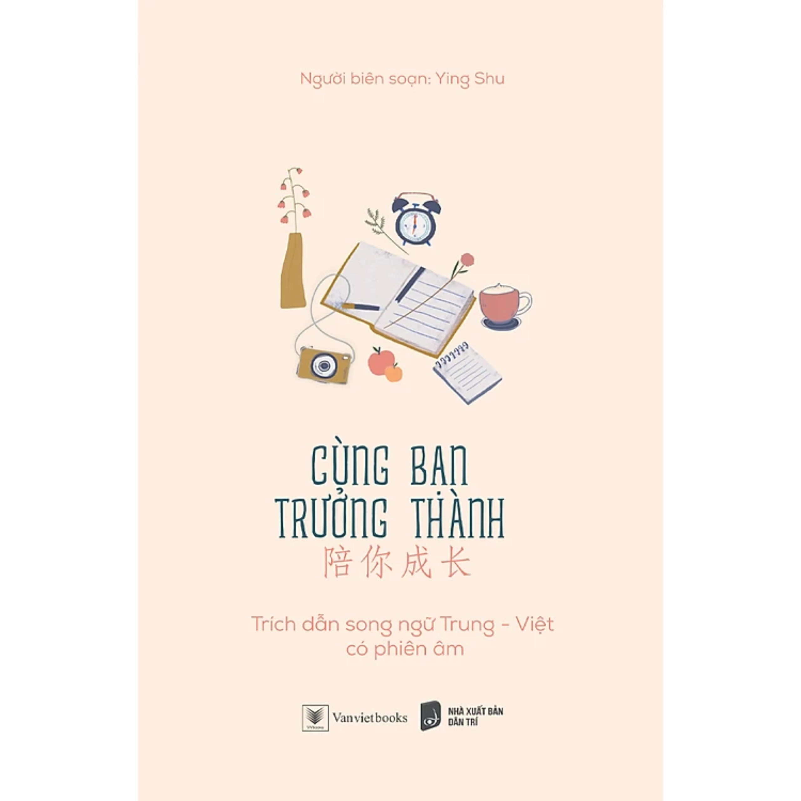 1. Cùng Bạn Trưởng Thành  “CÙNG BẠN TRƯỞNG THÀNH” - Cuốn sách lan tỏa đến bạn thông điệp “Không ngừng học tập, không ngừng nỗ lực” trên con đường khẳng định chính mình. Nếu bạn đang tìm kiếm một người bạn đồng hành trong việc học tập ngoại ngữ và phát triển bản thân thì cuốn sách “Cùng bạn trưởng thành” chắc chắn là cuốn sách dành cho bạn. Đúng như tên gọi của nó, cuốn sách sẽ là người bạn sát cánh bên bạn mỗi ngày, ngoài ra còn truyền tải cảm hứng và thông điệp sống tích cực thông qua những trích dẫn ngắn song ngữ Trung - Việt, qua đó bạn có thể vừa trau dồi thêm kiến thức mới, vừa làm mới thế giới nội tâm của bản thân. Với ngoại hình nhỏ gọn và vô cùng xinh xắn, bạn cũng có thể dễ dàng sách mang theo bên mình để cuốn sách trở thành bạn đồng hành không thể thiếu trong cuộc sống và có thể thưởng thức bất cứ lúc nào bạn rảnh rỗi. “Mỗi một việc mà bạn đang cố gắng làm, chắc chắn sẽ đơm hoa kết trái vào những ngày tháng sau này” - Hi vọng đây sẽ là cuốn sách “kim chỉ nam” giúp bạn ngày một hoàn thiện bản thân, mạnh mẽ trưởng thành, làm một phiên bản chính mình hoàn hảo nhất.