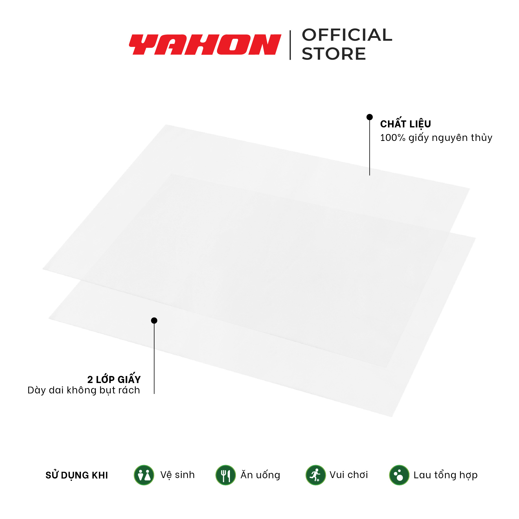 Mô tả sản phẩm Khăn giấy với thành phần 100% bột giấy nguyên sinh, không có các chất phụ gia, không chất tẩy trắng, không gây kích ứng da, an toàn cho người sử dụng.