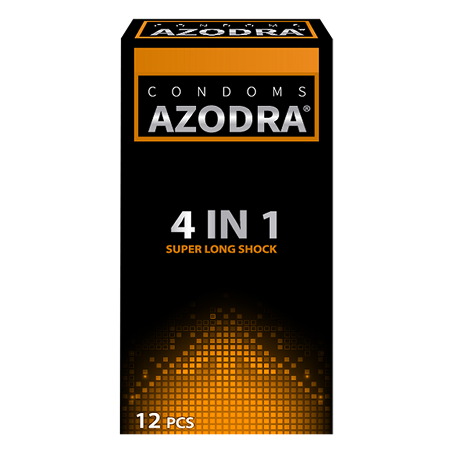 • Combo 3 Bao Cao Su 4 In 1 Gân, Gai, Mỏng, Kéo Dài Quan Hệ Azodra (12 Cái / Hộp) - Sản phẩm tổng hợp nhiều tính năng bên trong: Gân, gai, mỏng, kéo dài thời gian quan hệ. Hỗ trợ kéo dài thời gian gấp 2 - 3 lần bình thường.