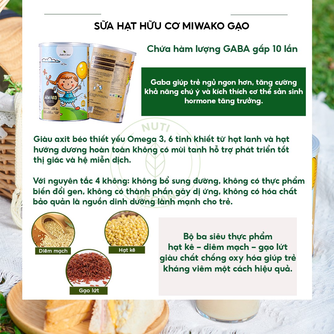 Combo 4 Hộp 400g Sữa Công Thức Hữu Cơ Miwako A+ Vị Vani, Sữa Hạt Cho Bé Phát Triển Trí Não Chiều Cao THÔNG TIN SẢN PHẨM SỮA HẠT MIWAKO A+, SỮA HỮU CƠ CHO
